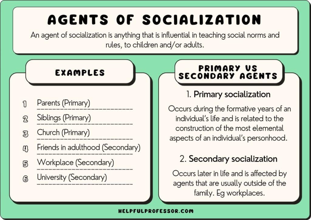 Definition: An agent of socialization is a person or group that is influential in teaching social norms and rules, both to children and adults.