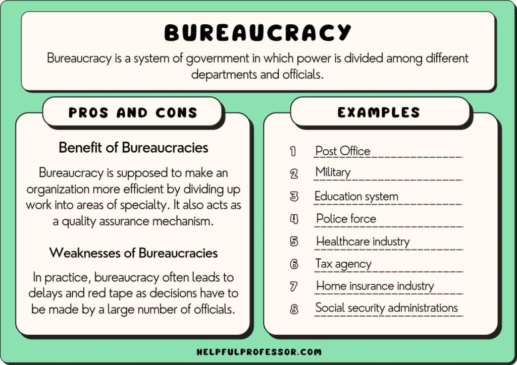 Definition: Bureaucracy is a system of government in which power is divided among different departments and officials.
