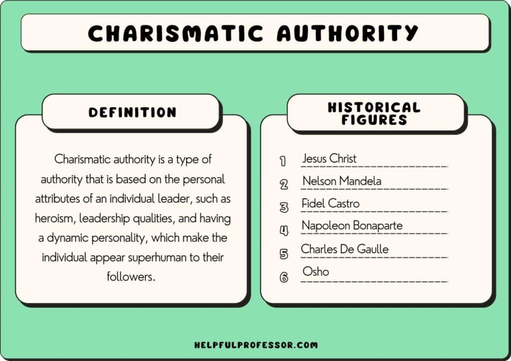 Definition: A type of authority that is based on the personal attributes and dynamic personality of a leader.