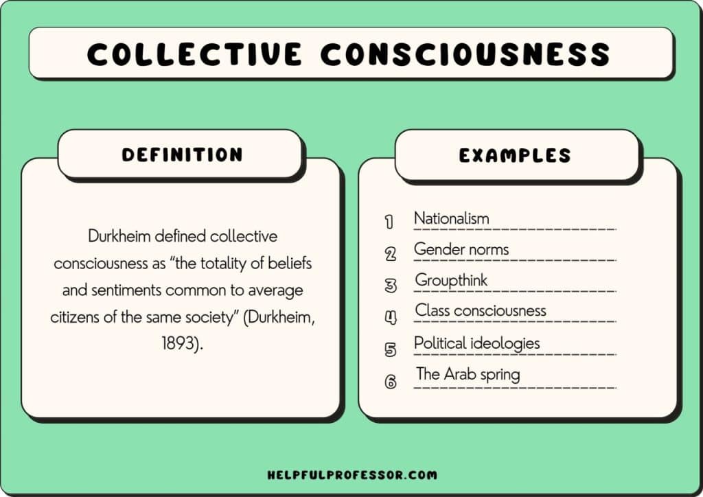 Definition: Durkheim defined collective consciousness as “the totality of beliefs and sentiments common to average citizens of the same society” (Durkheim, 1893).