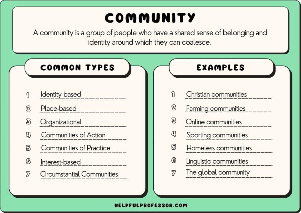 Definition: A community is a group of people who have a shared sense of belonging and identity around which they can coalesce.