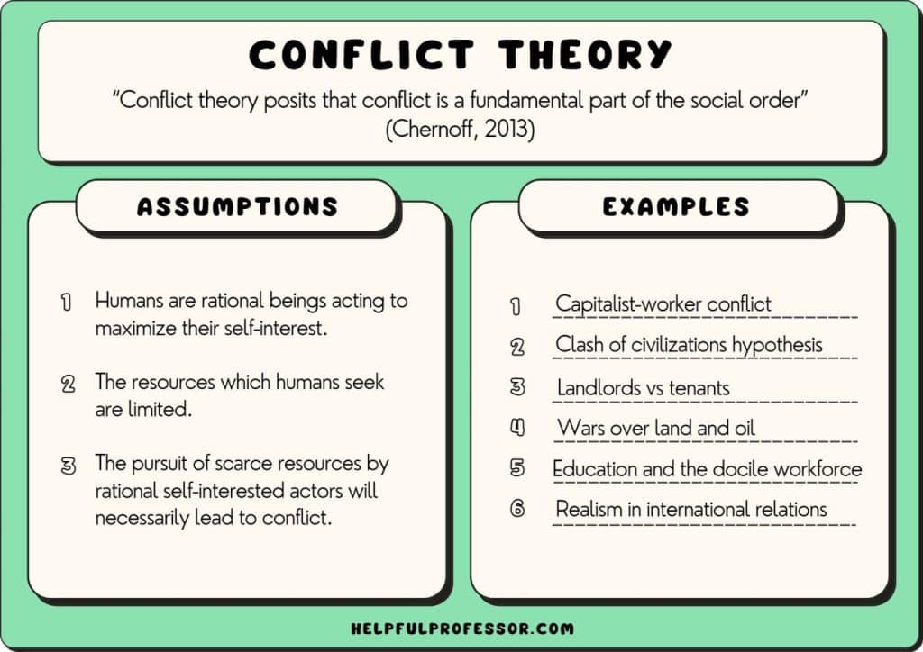 Definition: “Conflict theory posits that conflict is a fundamental part of the social order” (Chernoff, 2013)