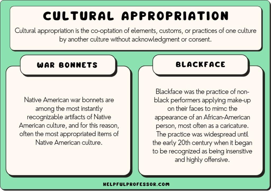 Definition: Cultural appropriation is the co-optation of elements, customs, or practices of one culture by another culture without acknowledgment or consent..