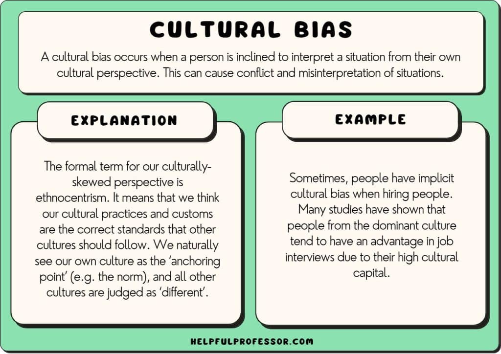 Definition: A cultural bias occurs when a person is inclined to interpret a situation from their own cultural perspective. This can cause conflict and misinterpretation of situations.