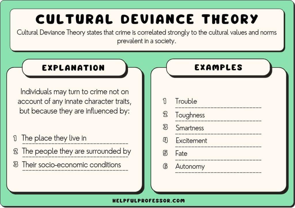 Definition: Cultural Deviance Theory states that crime is correlated strongly to the cultural values and norms prevalent in a society.