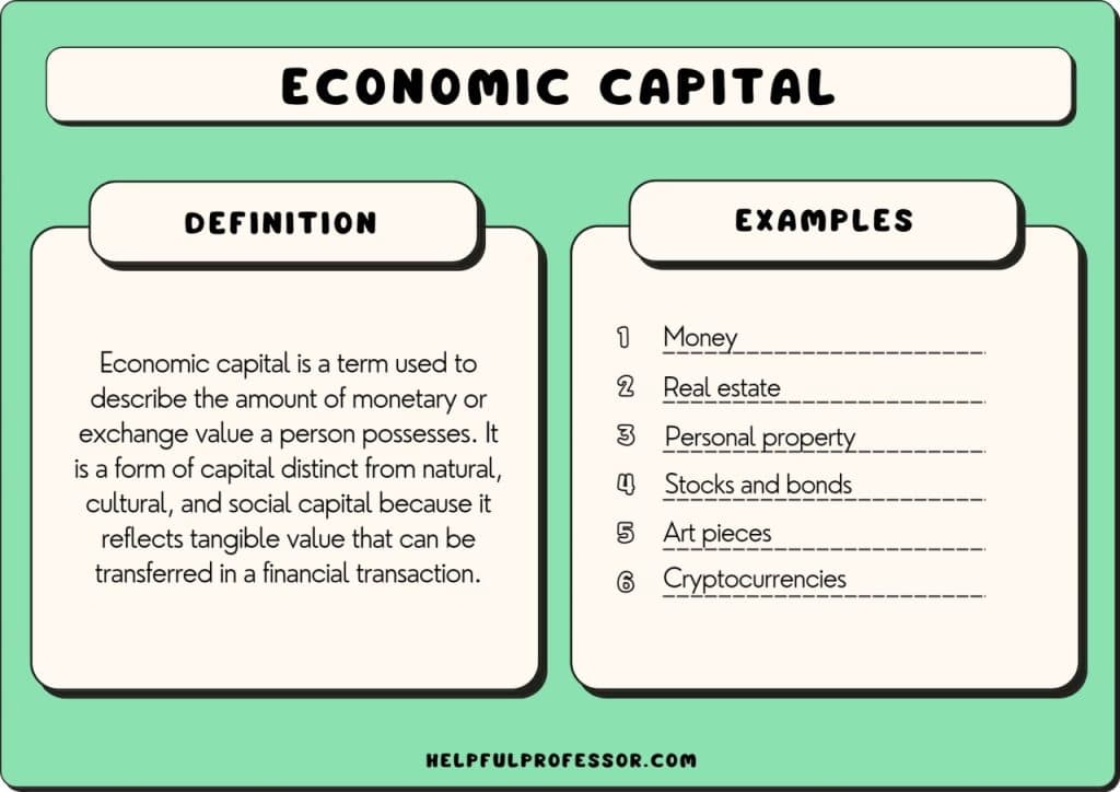 Definition: Economic capital is a term used to describe the amount of monetary or exchange value a person or entity possesses.