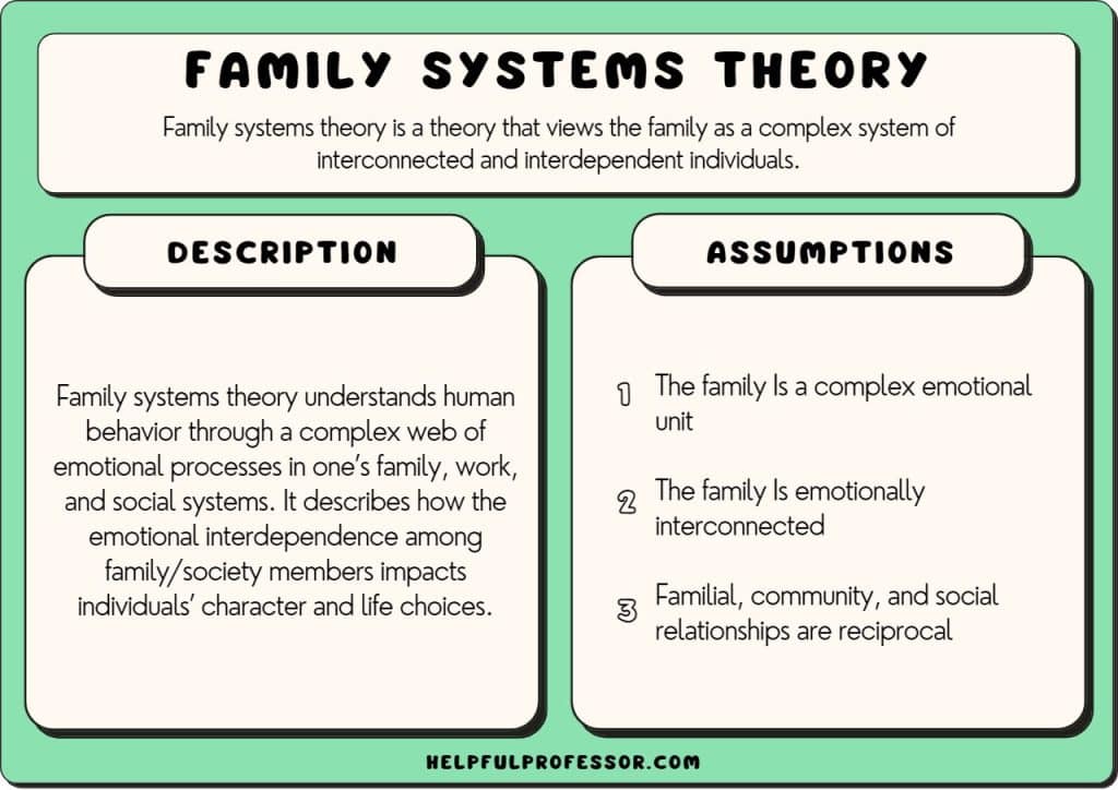Definition: Family systems theory is a theory that views the family as a complex system of interconnected and interdependent individuals.