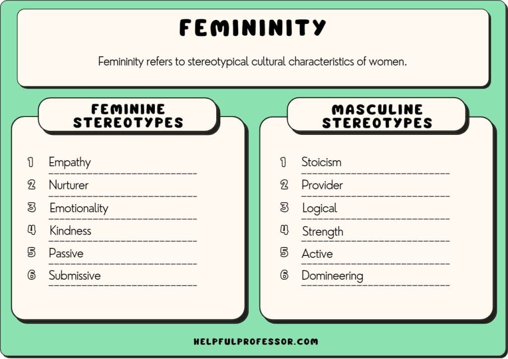 Definition: Femininity refers to stereotypical cultural characteristics of women.