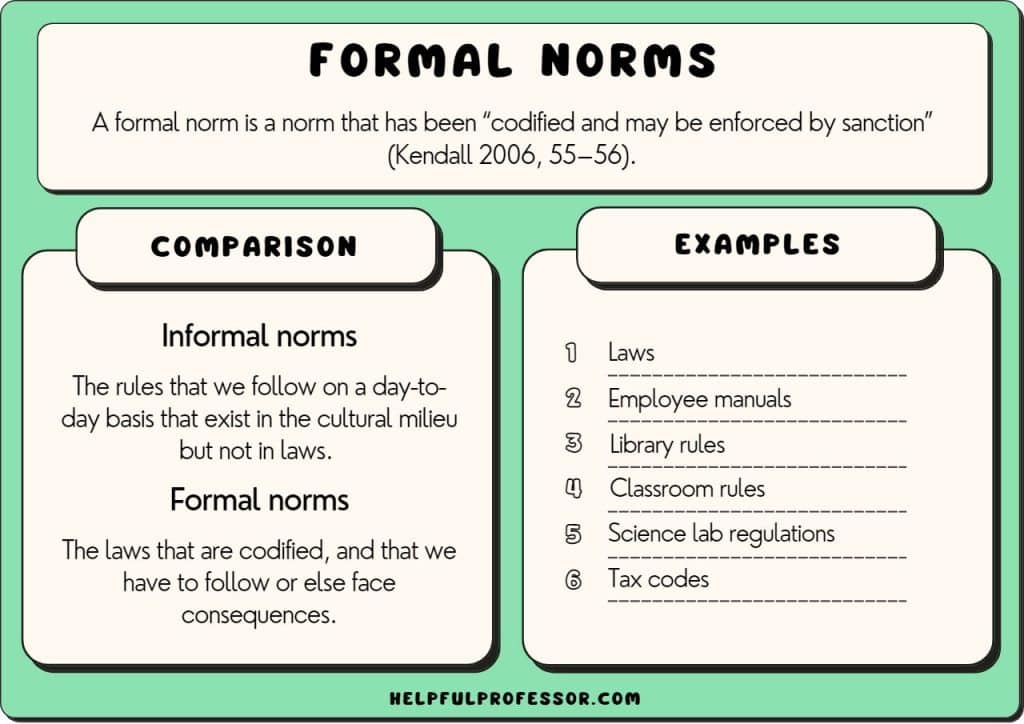 Definition: A formal norm is a norm that has been “codified and may be enforced by sanction” (Kendall 2006, 55–56).