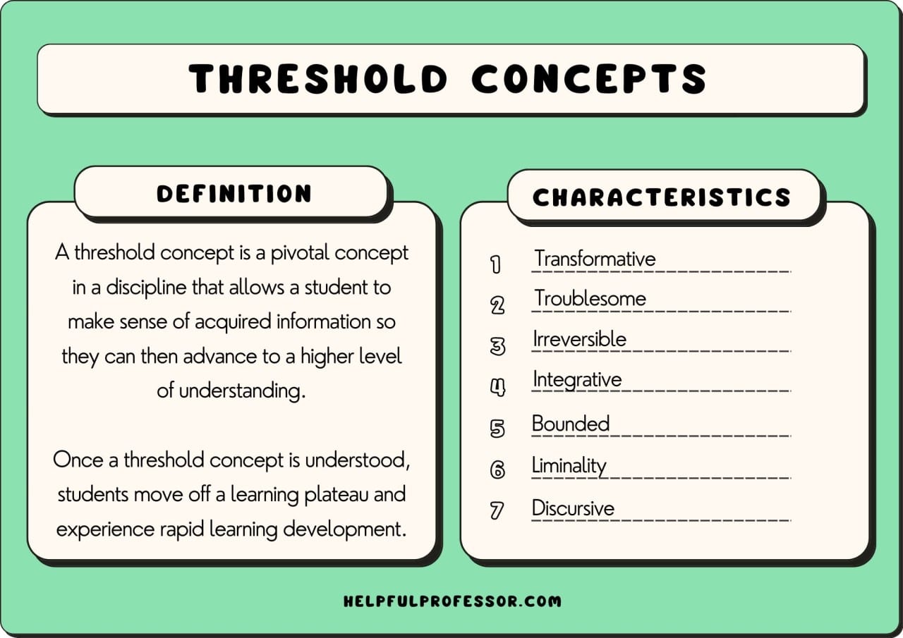 Definition: Threshold concepts are core ideas or principles in a discipline that, once understood, transform perception of the subject matter.